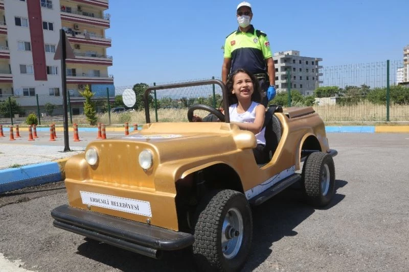 Mersin’in Erdemli ilçesinde pandemi sonrası normalleşme sürecinde eğitimlere başlayan kreş öğrencilerine trafik eğitimi verildi.