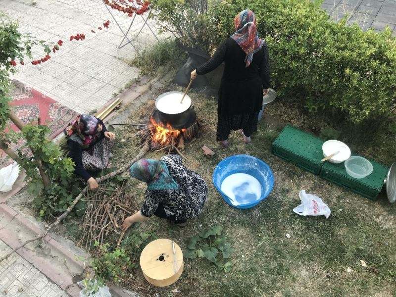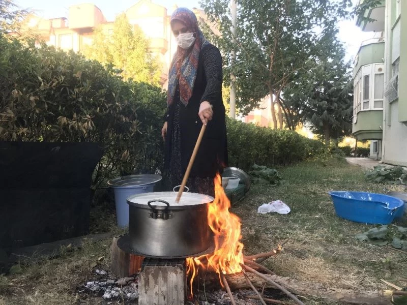 Konya’da pandemi süreci boyunca evde kalan kadınlar apartmanda imece usulü tarhana kaynatarak kışlık hazırlıklarını yapıyor.