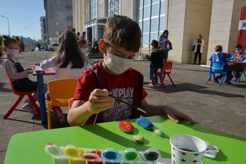 Pandemi sürecinde bunalan çocuklar taş boyama etkinliği buluştu