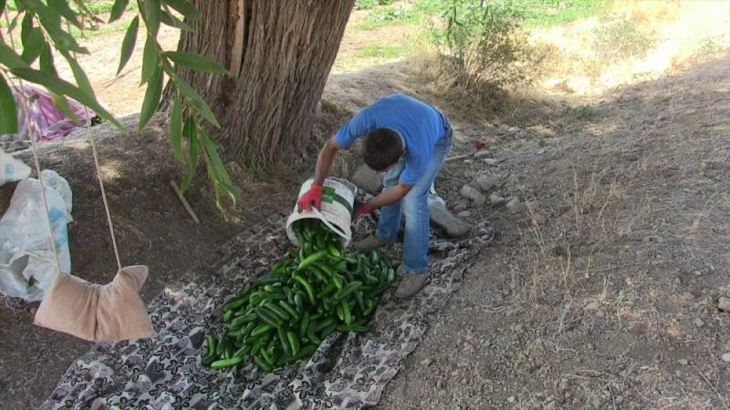 "Pandemi dolayisiyla is bulmakta zorlandim, maddi sikintilar çekmeye basladim. Igde Gönül Köprüsü Platformu Baskani Mehmet Önat'a durumumu anlattim. Kendisine tarla olsa üretim yaparak geçimimi saglayabilecegimi söyledim. Sagolsunlar evime yakin yerde 7 dekarlik bir tarlayi ücretsiz bir sekilde kullanimima tahsis ettiler. Diger hayirseverler de tohum ve gübre aldi. Esim ve çocuklarimla birlikte kendi emegimizi ortaya koyarak üretim yapmaya basladik. Günlük 200 kilogram salatalik topluyoruz."