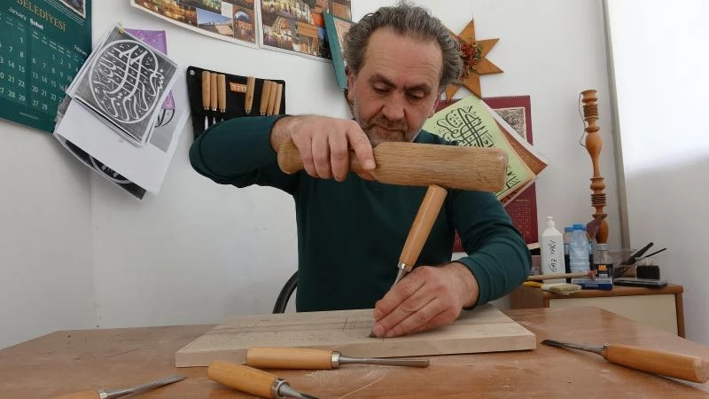 Tokat’ta dedesinden öğrendiği hattat mesleğini yaşatmaya çalışan Engin Küçükarslan, pandemi döneminde ahşap oyma sanatına daha çok vakit ayırarak ustalığını gösterme imkanı buldu.