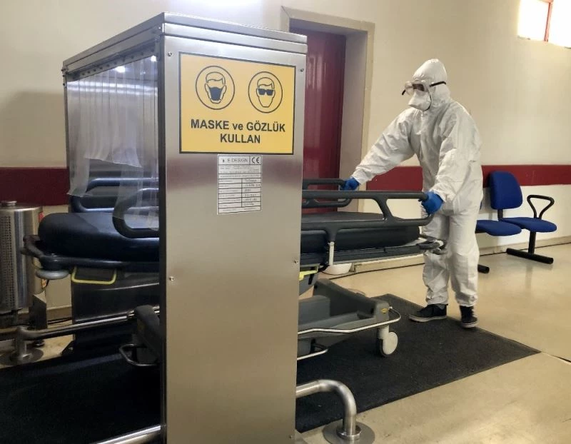 Bu süreçte özellikle sterilizasyonu ve temas kontrolünü en üst düzeyde tutmaya çalıştıklarının altını çizen Acar, “Bütün sistemlerimizi aktif şekilde kullanıyoruz. Bunu kullanmak işin özellikle sedye ve tekerlekli sandalyelerimizin geçebileceği alanda bunu konumlandırdık. Havalandırmasının da iyi olduğu bir alana konumlandırdık. Biz bununla, özellikle hastamız üzerinde olmadığı zaman, tekerlekli sandalye ya da sedye üzerindeki örtüleri alınıp en son yeni bir hastaya kullanılacak şekilde bırakılmak üzere temizlenip o şekilde muhafazasını sağlıyoruz” ifadelerini kullandı.