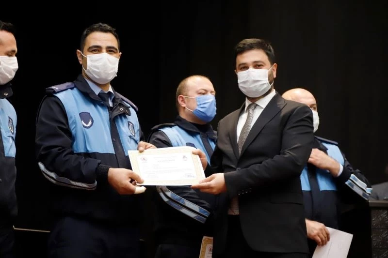 Vefa Sosyal Destek Grubu’nda görevli Zabıta Müdürü, zabıta amirleri ve zabıta memurlarından oluşan 50’ye yakın kişi, başarı belgelerini Kaymakam Mustafa Koç, AK Parti Kağıthane İlçe Başkanı Serkan Cantürk ve Belediye Başkanı Mevlüt Öztekin’in elinden aldı.