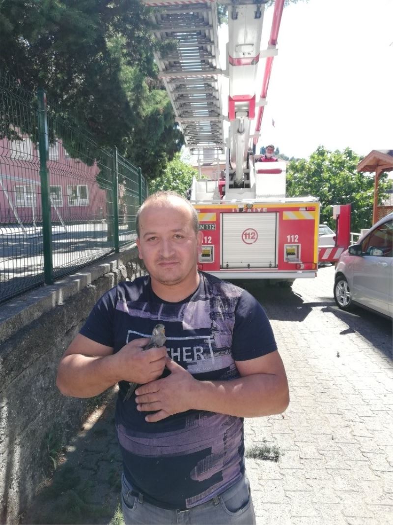 Zonguldak’ın Ereğli ilçesinde bir kişi evden kaçan sultan cinsi papağanını almak için çıktığı ağaçta mahsur kaldı.