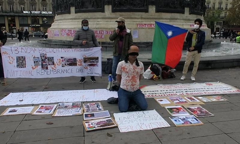 Fransa’nın başkenti Paris’te düzenlenen protestoda, İran ve Pakistan arasında yer alan Belucistan bölgesinde yaşayanların maruz kaldığı olumsuzluklara dikkat çekilirken, Beluç milliyetçisi bir kişinin gözü kapalı yaptığı eylem ilgi gördü.