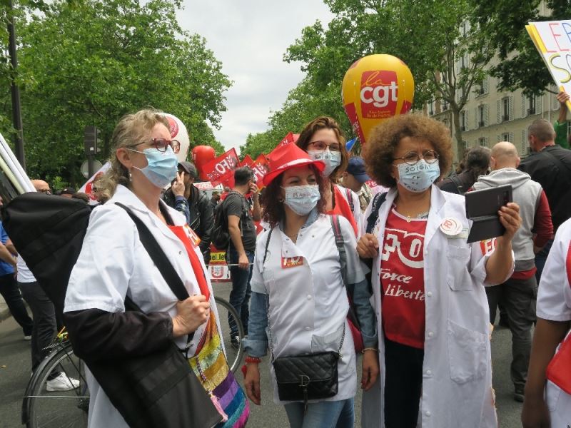 Doktor, hemşire ve hasta bakıcıların eylemine ülkenin en büyük işçi sendikalarından Genel İş Konfederasyonu (CGT) başta olmak üzere çok sayıda sendika da destek verdi. Sağlıkçılara, sendikaların yanı sıra sarı yeleklilerin de destek vermesi, polisin sıkı güvenlik önlemleri almasına neden oldu. Protestocular yürüyüş boyunca kalabalık bir polis ekibi tarafından kontrol edildi. Her iki yanda polisler protestocularla birlikte yürüdü.