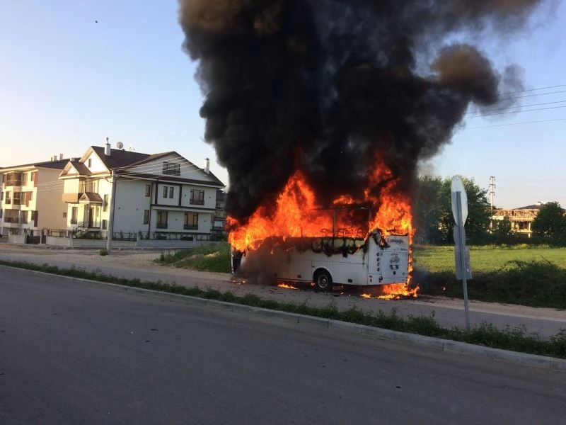 Bolu’da, park halindeyken henüz bilinmeyen bir nedenle yanan servis midibüsü 10 dakika içinde küle döndü.