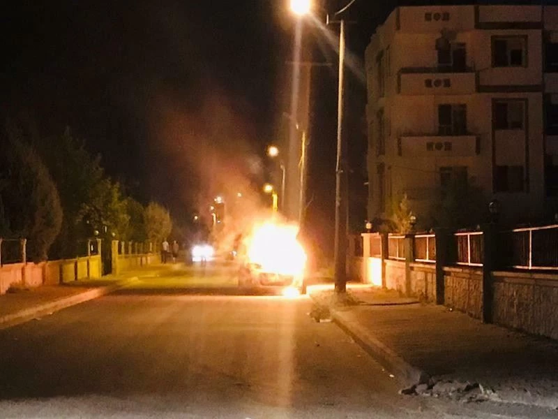 Adıyaman’da, park halindeki hafif ticari araç alev alev yanarak kullanılamaz hale geldi.