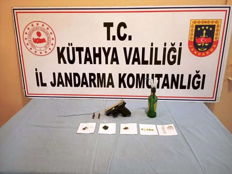 Kütahya İl Jandarma Komutanlığı ve Merkez İlçe Jandarma Komutanlığı ekipleri H.D. ve E.Ç.Ç. isimli şahısların Bursa’dan temin ettikleri uyuşturucu maddeyi Kütahya’ya getireceği bilgisine ulaştı. Plakası belirlenen bahse konu iki araç Merkez İlçe Zığra Mahallesi yolu üzerinde park halinde bulundu. Araçlardan birinin içerisinde yapılan aramada, 2 gram bonzai,1 gram kubar esrar, 5 adet extacy hap, 2 adet uyuşturucu madde kullanma aparatı, 1 adet ruhsatsız tabanca ve 4 adet tabanca fişeği ele geçirildi.