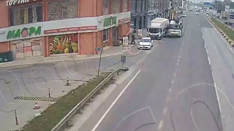 Sakarya’da iş makinesi yüklü tırın yol kenarında park halindeki kamyona çarptığı ve bu esnada kaldırımdaki vatandaşın ölümden döndüğü anlar kameralara yansıdı.