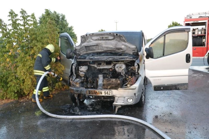 Sivas’ta park halindeyken alev alan minibüste maddi hasar oluştu.