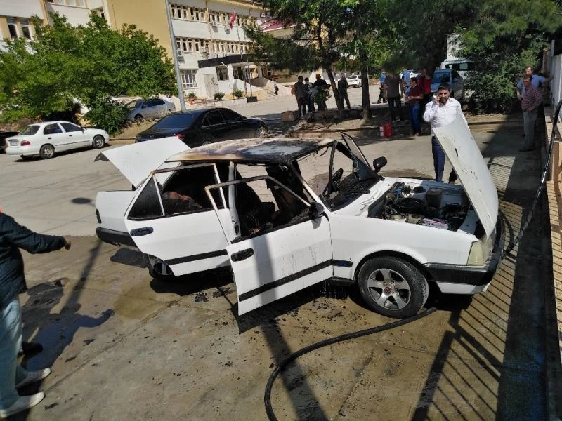 Edinilen bilgiler göre, Düziçi Kaymakamlığı otoparkında Düziçi Mal Müdürlüğü memurlarından Nebihan Teke’ye ait 01 GF 374 plakalı otomobil henüz bilinmeyen bir nedenle yanmaya başladı. Çevredekiler itfaiyeye haber verirken, bu sırada bazı vatandaşlar da yangın söndürme tüpüyle alevlere müdahale ettiler ancak yangını söndüremediler.