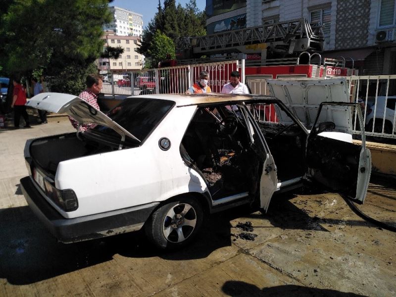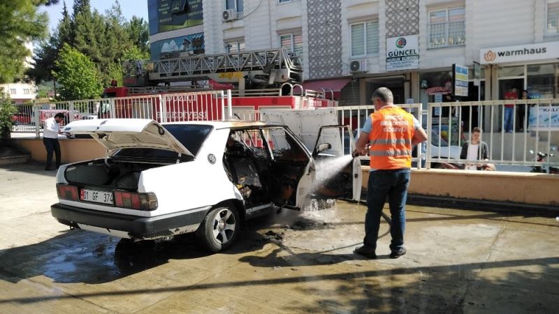 Osmaniye’nin Düziçi ilçesinde park halindeki otomobil alev alev yanarak, kullanılamaz hale geldi.