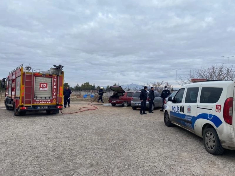 Nevşehir’de park halindeyken alev topuna dönen otomobil, kullanılamaz hale geldi.