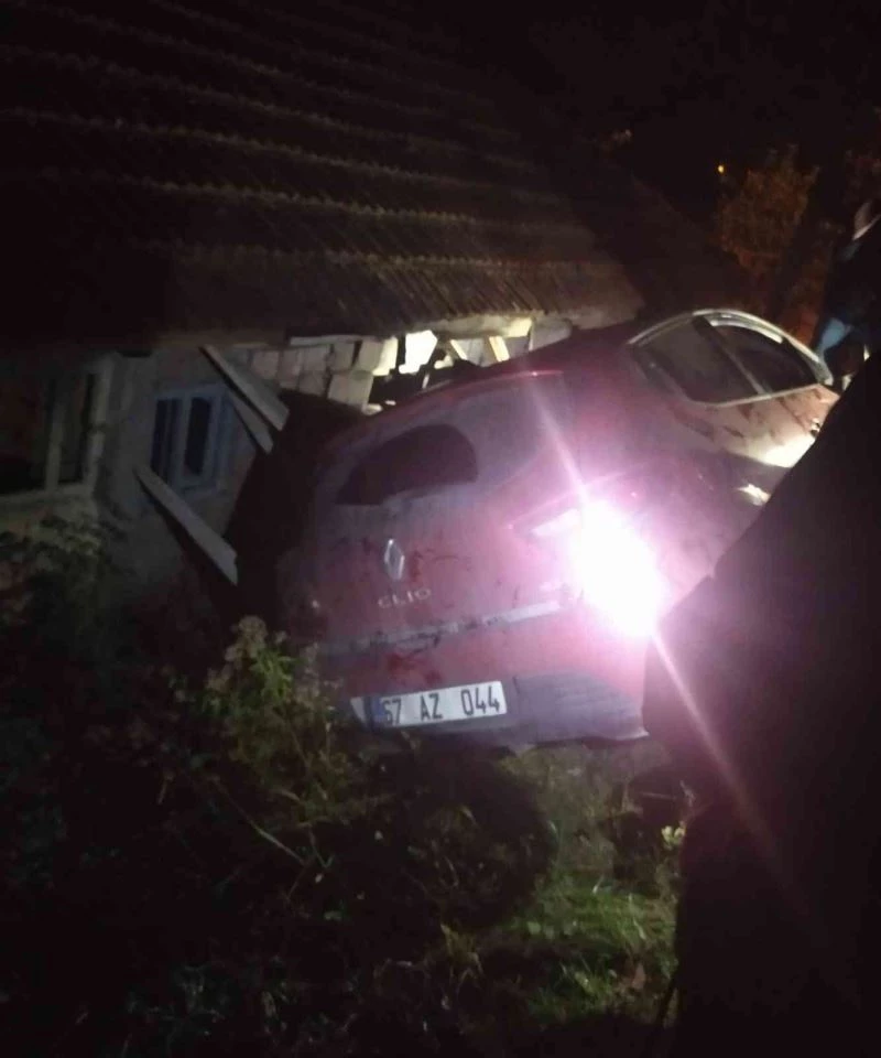Zonguldak’ta Çatalağzı beldesinde park halinde bulunan otomobil bir evin önüne uçtu.