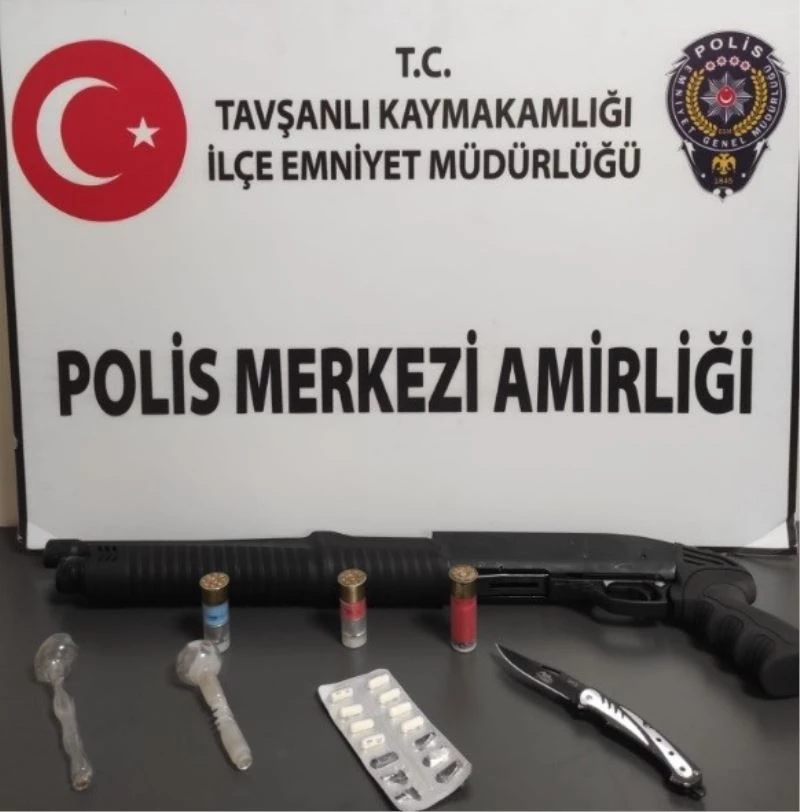 Alanın bilgiye göre, Tavşanlı İlçe Emniyet Müdürlüğü ekiplerinin yaptığı çalışmalar neticesinde, İstasyon Mahallesi’nde park halindeki Ş.K.’ye (32) ait araç içerisinde yapılan aramada pompalı tüfek, uyuşturucu madde içiminde kullanılan düzenek ve 3 adet av kartuşu ele geçirildi.