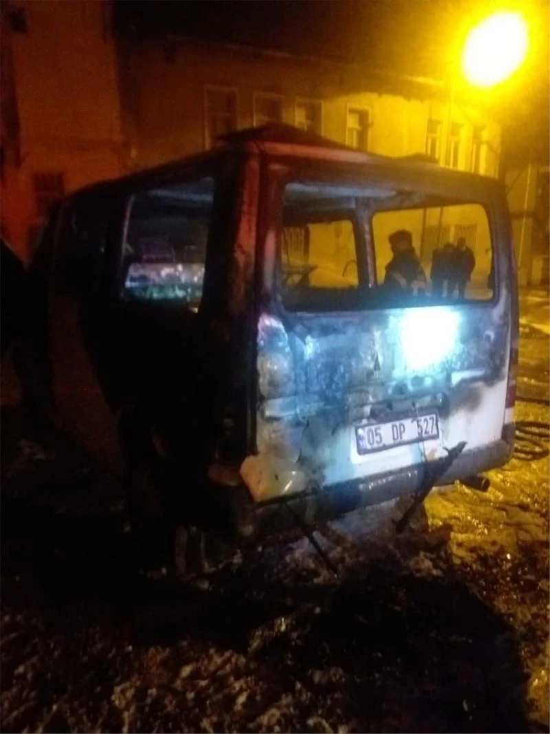 Amasya’nın Merzifon ilçesinde park halindeki bir ticari araçta yangın çıktı. Kısa sürede alev alan araç, kullanılamaz hale geldi.
