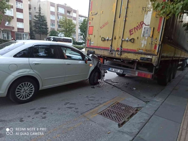 Park halindeki tırın altına otomobiliyle giren sürücü ucuz kurtuldu