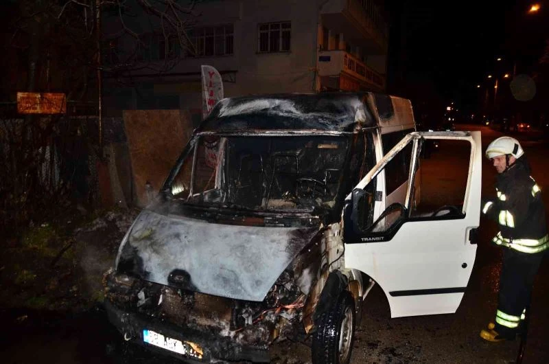 Park halindeyken yanan minibüs kullanılamaz hale geldi