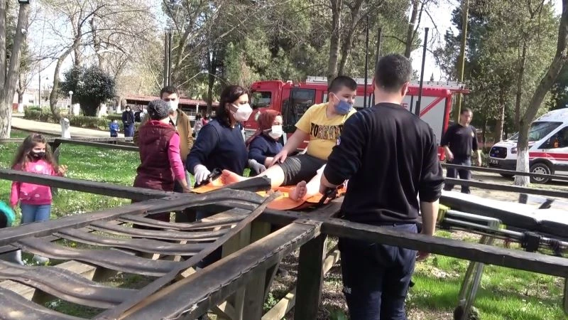 Parkta olayı gören çocuklar ise "Koşarken birden ayağı sıkıştı. Sonra da kanamaya başladı. İtfaiyeye haber verildi" dedi.