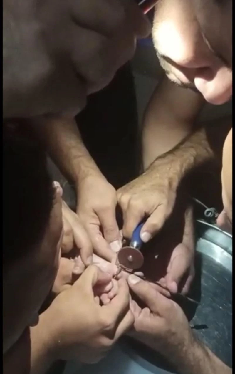 Edinilen bilgiye göre, evde anahtarlıkla oynayan küçük kız parmağını anahtarlığa sıkıştırdı. Ailenin durumu fark etmesi üzerine anne ve babası küçük çocuğu alarak İtfaiye Müdürlüğüne götürdü. Anahtarlığa sıkışan parmağın morardığını gören itfaiye ekipleri önce bir kapa su koydu ardından spiral makinası ve kesici aletle çocuğun parmağını anahtarlıktan çıkardı.