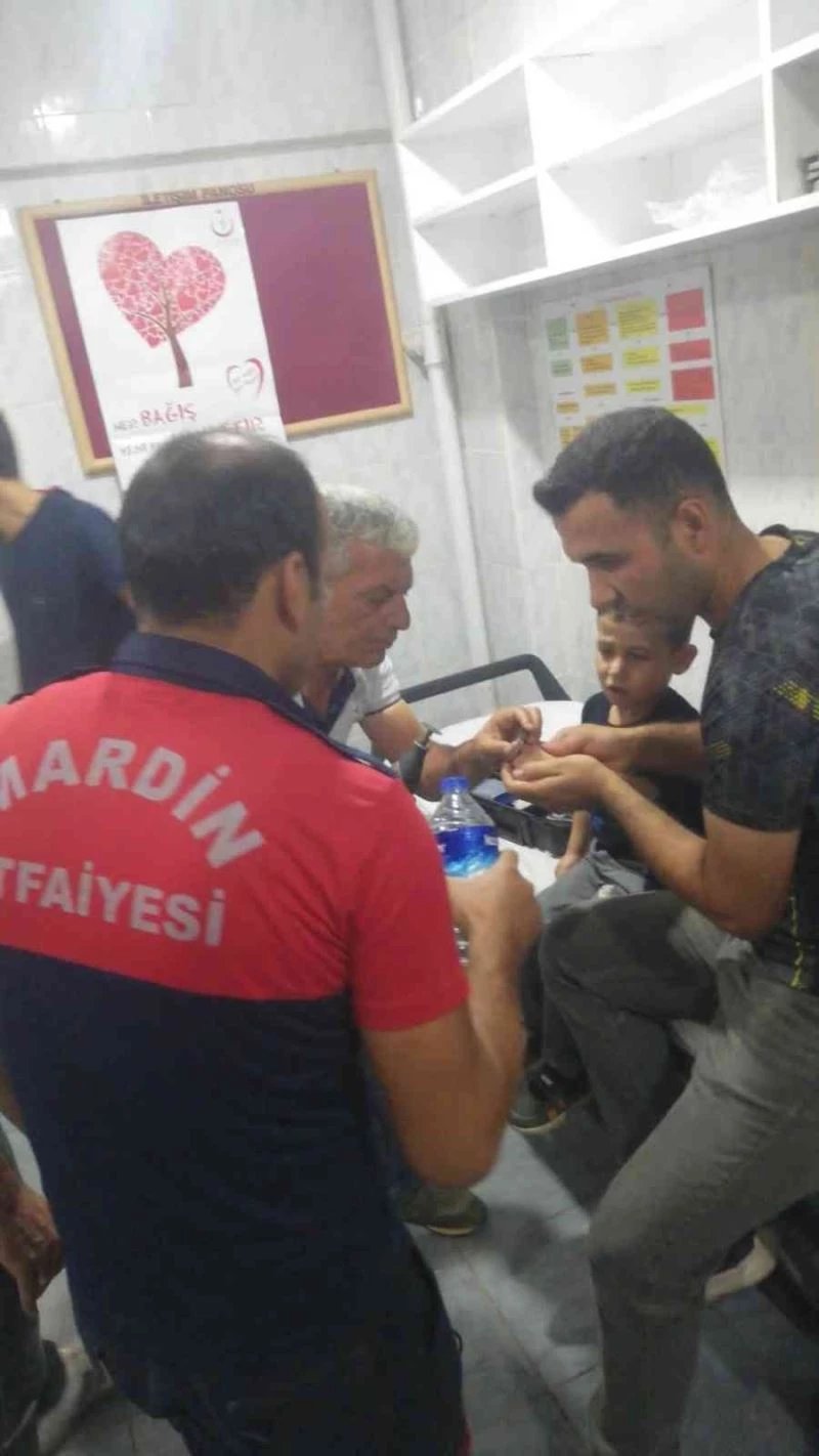 Mazıdağı ilçesinde Mehmet Çalgıcı isimli çocuk, evinde oynadığı sırada yerde bulduğu demir kapağı parmağına taktı. Parmağında sıkışan kapağı çıkaramayan Mehmet, ailesi tarafından Mazıdağı Devlet Hastanesine götürüldü. Sağlık ekipleri de sonuç almayınca durum itfaiye ekiplerine bildirildi. Hastaneye gelen itfaiye ekipleri, kesici aletle Mehmet’in parmağına sıkışan demir kapağı keserek çıkarttı. Aile, itfaiye ekiplerine teşekkür etti.