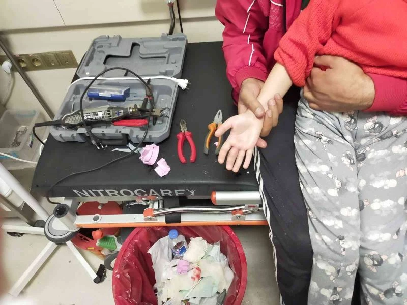 Çocuğunun sıkışan parmağının bulunduğu yerden çıkarılmasının ardından aile derin bir nefes alırken, itfaiye ekiplerine teşekkür etti.