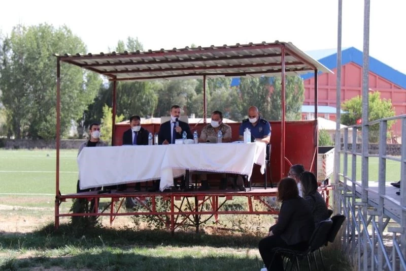 Kaymakam Perçi, ilçe güreş sahasında yaptığı konuşmada, "Pandemi sürecini hep birlikte atlatacağız. Kamu personellerinin ve muhtarlarımızın konu hakkındaki hassasiyetlerini takdir ediyorum" ifadelerini kullandı.