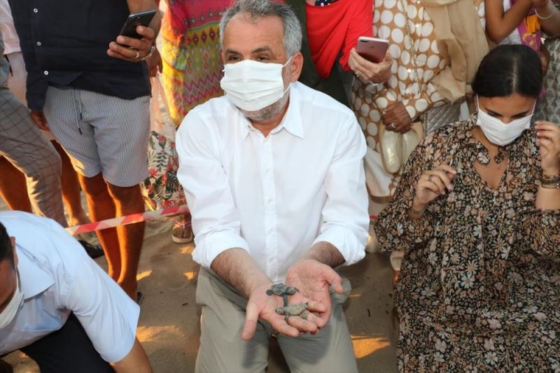 Kas ilçesindeki Patara Sahili'nde yumurtalarindan çikan caretta caretta yavrularinin zorlu yolculuguna, Çevre ve Sehircilik Bakan Yardimcisi Prof. Dr. Mehmet Emin Birpinar, Kas Kaymakami Saban Arda Yazici, Belediye Baskani Mutlu Ulutas da eslik etti.