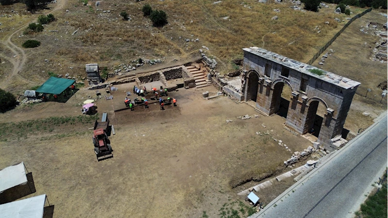 Kent kapısının anıtsal bir giriş olduğuna dikkati çeken Aktaş, "Yapı üç kemerli. Yapının en önemli özelliği üç geçişin üstünde iki tane nişte heykeller bulunuyor ve konsollarda kapıyı yaptıran Vali Mettius Modestus'un ailesinin büstlerinin yer aldığını bilmekteyiz. En üstte ise İmparator Traian'ın karısının heykelleri yer almakta." diye konuştu.