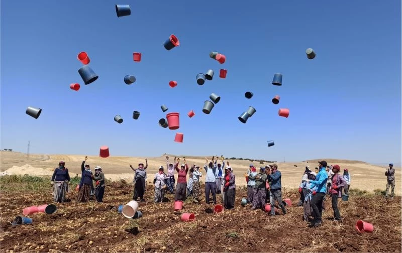 Adıyaman’ın Kahta ilçesine bağlı Tuğlu köyünde yerli patates hasadı kova atma töreni ile bitti.