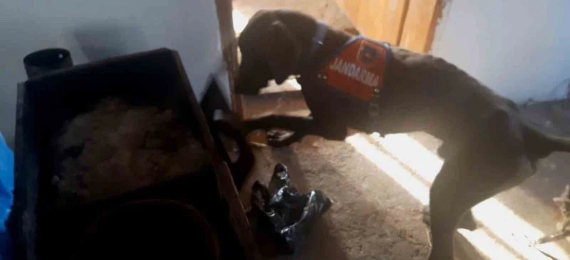 Aksaray’da 5 ayrı adrese operasyon düzenleyen jandarma ekipleri, hassas burunlu narkotik köpeği "Kaput"un patisiyle açtığı sobadan uyuşturucu çıktı. Evde yapılan aramalarda ayrıca, tüfek ve mühimmat ele geçirildi.