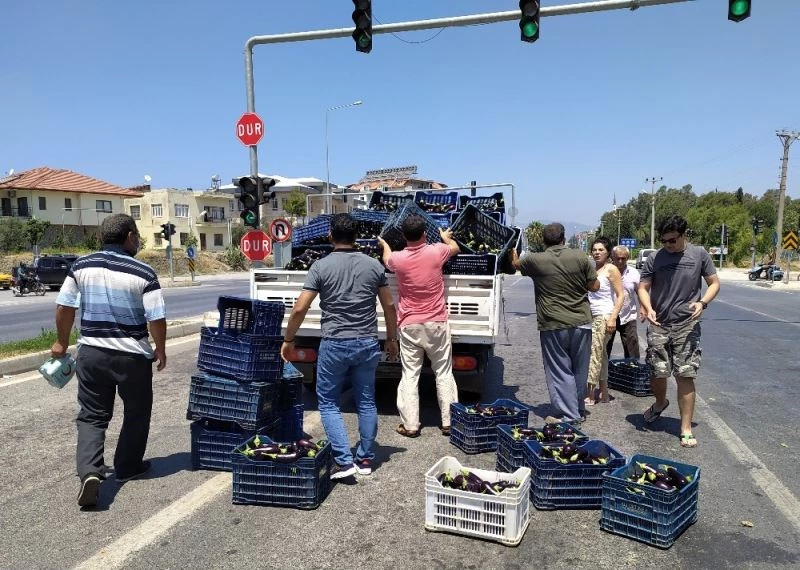 Patlıcanları yola dökülen sürücü için seferber oldular