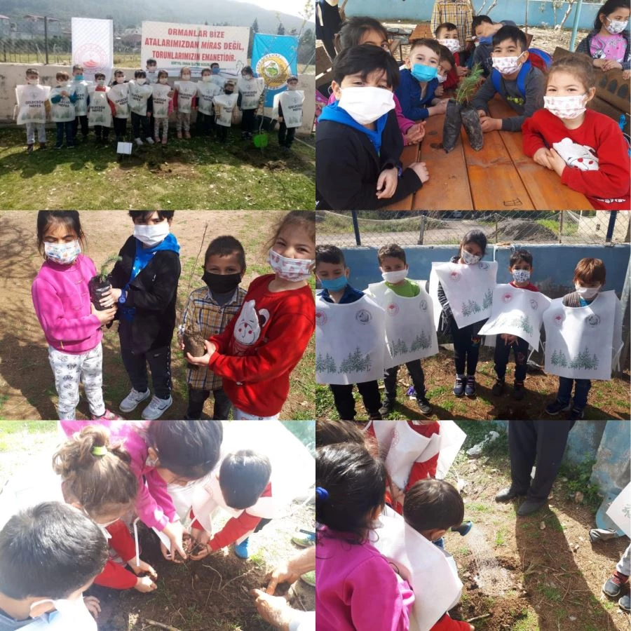 Hatay'ın Payas İlçesi Çağlalık İlkokulu Anasınıfı Öğrencileri “Bir Tohum Hikayesi” etkinliği çalışması yaptılar, Tohumlardan ilk bitkilerini yetiştiren öğrenciler fidanlarını doğaya diktiler.