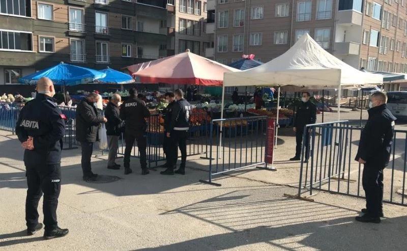 Bilecik’te zabıta ve polislerden oluşan denetim ekibi, pazar alanında salgınla mücadele denetimi yaptı.