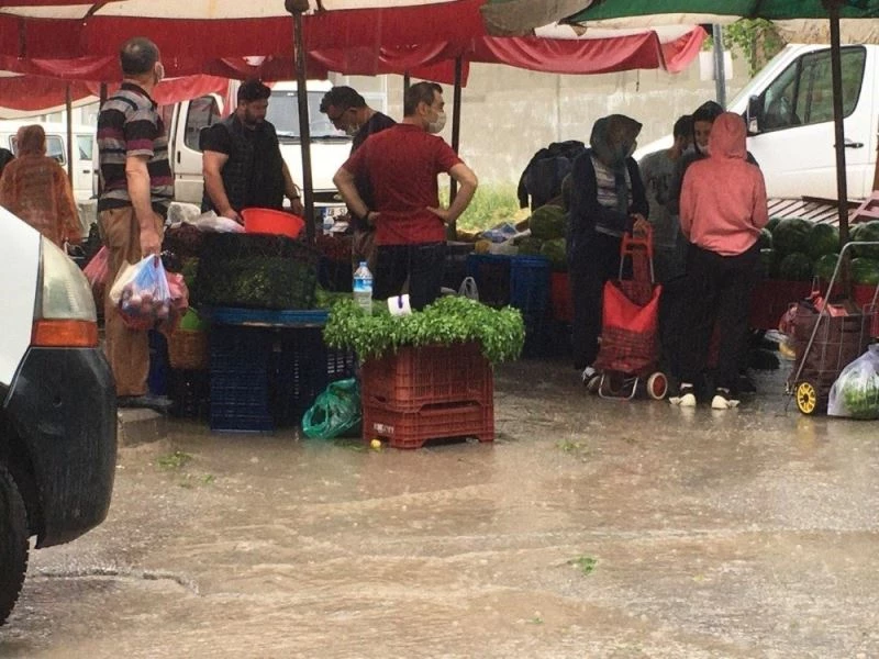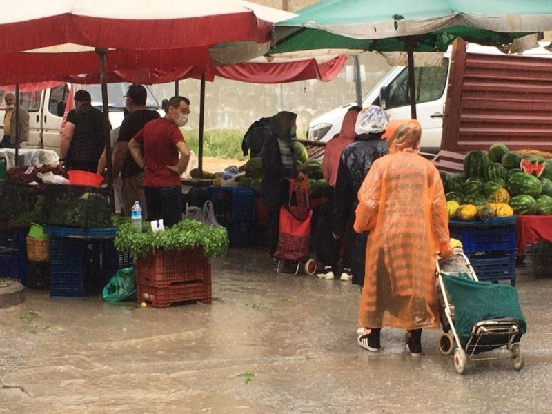 Eskişehir’de şiddetli yağmur, alışveriş için pazara gelen vatandaşları zor anları yaşattı.