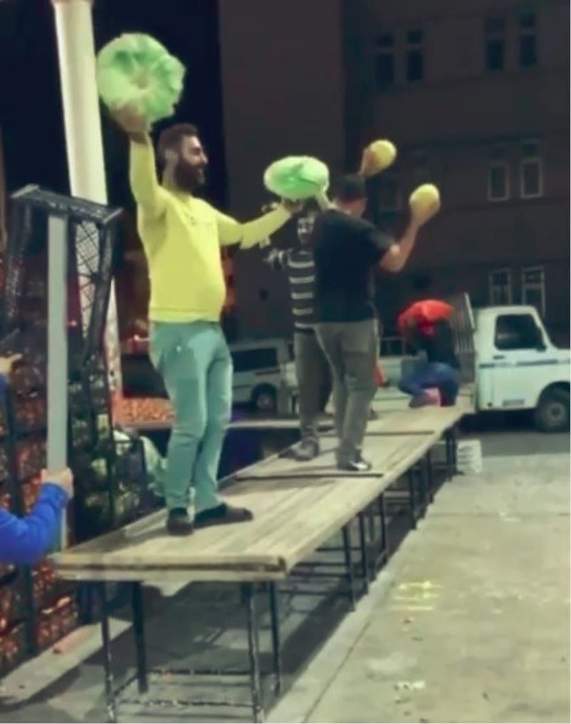 Antalya’da bir grup pazarcı genç, kış sebze ve meyvelerini pazar yerinde kurdukları platformda tanıttı, sosyal medya patladı. Kısıtlamadan muaf olan pazar esnafı beş kafadar, Gülveren Mahallesindeki semt pazarında pazarın kurulması öncesi yaptıkları defileyle kış sebze ve meyvelerini tanıtıp sosyal medyada paylaştı. Esnafın tahtadan yapılan sahne üzerinde ellerinde soğan çuvalları meyve kasalarıyla gösterdikleri performans ise parmak ısırttı.