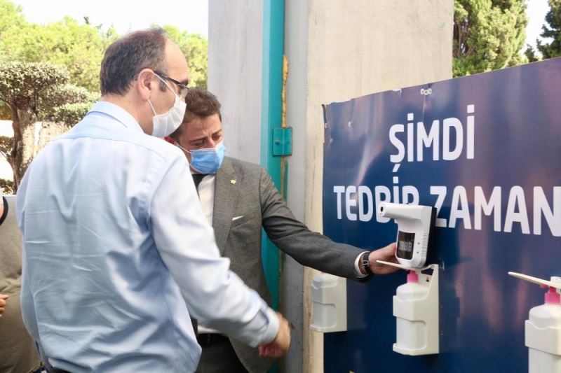 Bandırma’da Kapalı Pazar ve Yaşam Alanı’nda Çarşamba günleri kurulan semt pazarında esnafın ve vatandaşların maske, mesafe, hijyen tedbirlerine uyup uymadıkları denetlendi. Kaymakam Günhan Yazar, Bandırma Belediye Başkanı Tolga Tosun ve İlçe Emniyet Müdürü Soner Duran’ın katıldığı şok denetimlerde pazar yerinde bulunan pazarcı esnafının ve vatandaşların maske takma, sosyal mesafe ve hijyen kurallarına uyup uymadıkları gözlemlendi. Kurallara riayet etmeyen vatandaşların uyarıldığı, kurallara uyanların ise tebrik edildiği denetimlerde pazar yeri girişinde ateş ölçer cihazı ve dezenfektan sıvısı bulunup bulunmadığı da kontrol edildi.