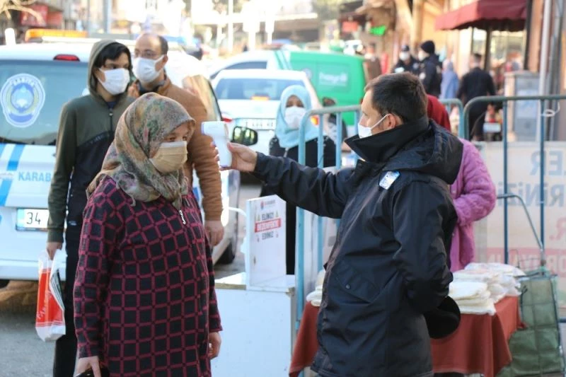 İçişleri Bakanlığı’nın ülke genelinde 4 gün boyunca pazar yerleri, toplu ulaşım araçları ve alışveriş merkezleri olmak üzere vatandaşların kalabalık şekilde bulunduğu yerlere yönelik yoğunlaştırılmış denetimler başlatmasının ardından Karabük’te polis ve zabıta ekipleri semt pazarlarında denetimleri arttırdı. Pazar alanlarını kontrol altına alan ekipler burada pazar esnafını maske, mesafe ve temizlik konularında uyarmakla birlikte görevlilere maske, sosyal mesafe ve sigara yasağı konularında titiz davranmaları istedi. HES koduna da önem verildiği uygulama vatandaşları memnun etti.