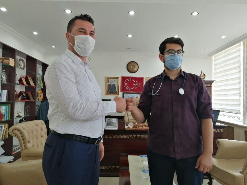 Başarılı genci makamında ağırlayan Turhal Belediye Başkanı İlker Bekler, Melih Buğra Ertek’e üniversiteyi bitirdiğinde kullanması üzerine stetoskop hediye etti. Başkan Bekler, hem haftada iki gün semt pazarlarımızda çalışıp hem de ideallerine uygun bir başarı hikayesini yakalayan Ertek’i tebrik ederek, “Yeni başlayacağı öğrenim hayatında bitirene kadar aşamalarında da maddi ve manevi her türlü yanında ve yardımcı olacağımızı kendisine söyledik. Gururla hayatının ve öğrenim hayatını takip edeceğiz. Bu vesile ile tekrardan kendisini tebrik ediyorum ve sembolik bir hediye olarak meslek hayatına başlangıcını bir göstergesi olarak hediyemizi takdim ediyorum” dedi.