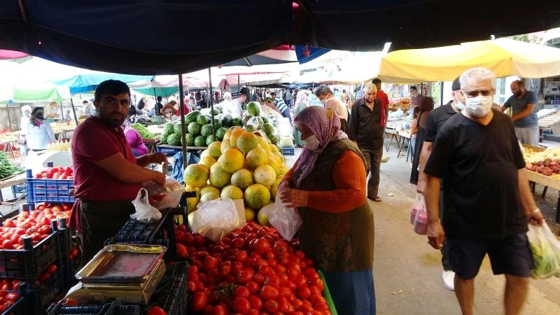 Bir pazarcı ise "Buraya ikinci kısım meyveler geliyor. Ondan dolayı ucuz. Köylü malını tüccara verdi. Komple tarlaları kapattı. Bu ürünler tarlada geride kalanlar. Ondan dolayı ucuz veriliyor. Meyve fiyatları uygun. Vatandaş memnun. Şeftali 7-8, domates 2 buçuk TL. Bu domatesin maliyeti tarlada 1 TL" diye konuştu.