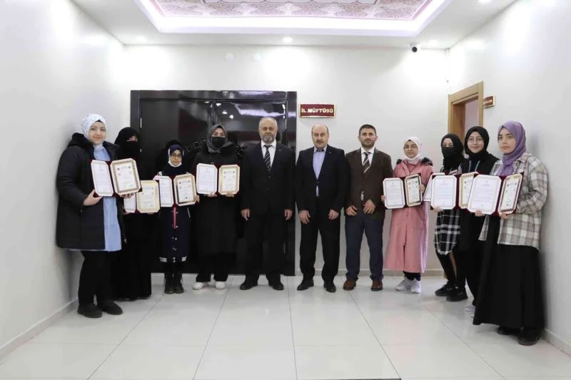 İl Müftülüğüne bağlı Abdulvahhabi Gazi Yatılı Kur’an kurslarında öğrenim gören 7 öğrenci ve Sivas Uluslararası Şehit M. Murat Ertekin Anadolu İmam Hatip Lisesi’nde öğrenim gören 2 öğrenci hafızlık belgelerini İl Müftüsü Remzi Pehlivan’dan aldı.