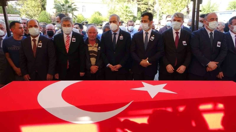 Cenaze törenine katılan Aile ve Sosyal Hizmetler Bakan Yardımcısı İsmail Ergüneş tören sırasında ayakta durmakta zorlanan şehidin babası Eyüp Yalman’ın elinden tuttu.