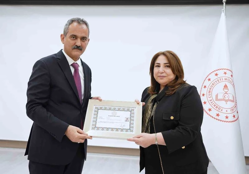 Eskişehir İl Milli Eğitim Müdürü Pervin Töre, Milli Eğitim Bakanı Mahmur Özer’in elinden başarı belgesi aldı.