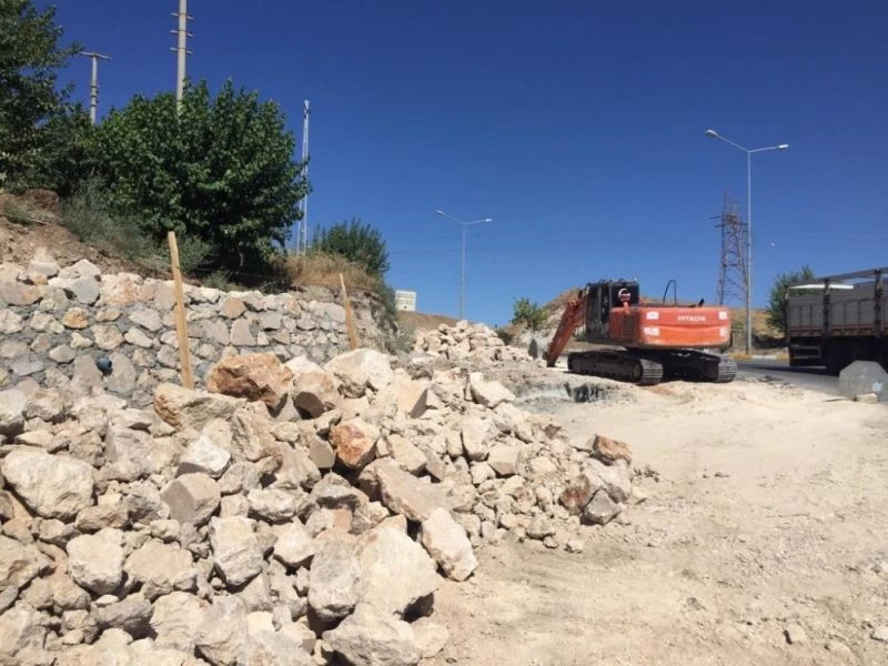 Adıyaman Belediyesi Fen İşleri Müdürlüğü ekipleri, Petrol Caddesinin Atatürk Bulvarı bağlantı noktasında istinat duvar döşeme çalışması gerçekleştirdi.
