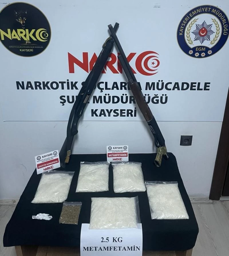 Kayseri’de polis ekipleri tarafından düzenlenen uyuşturucu operasyonunda piyasa değeri 600 bin TL olan 2.5 kilo uyuşturucu madde ele geçirildi.