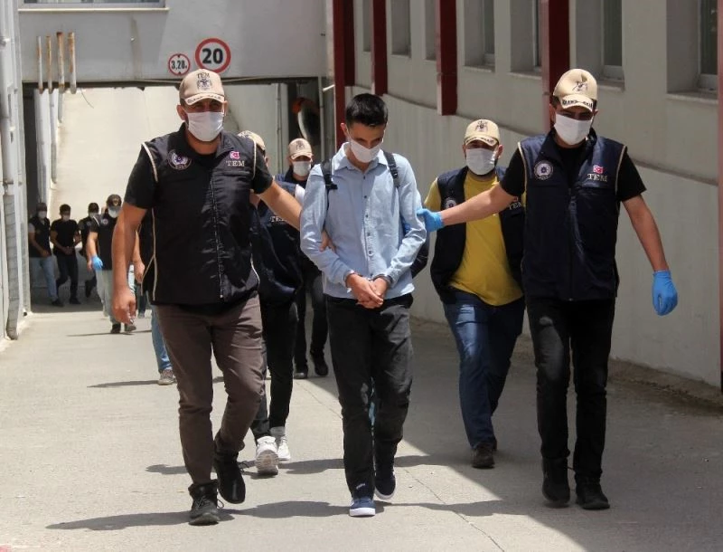 Terörle mücadele polislerinin, zanlıları teknik cihazlarla alınan görüntüler ve yapılan analiz çalışmaları sonucunda tespit ettiği belirtildi. Zanlılar, emniyetteki sorgularının ardından adliyeye sevk edildi. Nöbetçi sulh ceza hakimliğine çıkarılan B.A., M.Ü., A.S., C.B., A.D., E.G., F.K. tutuklanırken, Ö.Y., H.Z., A.A. ise ev hapsi tedbiriyle tutuksuz yargılanmak üzere serbest bırakıldı.
