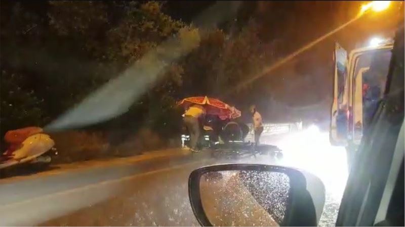 Edinilen bilgiye göre, kaza İznik sahil yolunda gece 00:00’da yaşandı. İznik’te 2 gündür devam eden sağanak yağmur dün gece de devam etti. Şiddetli yağmurda seyrederken kontrolden çıkıp savrulan motosikletin üzerinden düşen sürücü Seda Oral (23) yaralandı. İhbar üzerine olay yerine gelen 112 sağlık ekipleri yaralı kadına sağanak yağmur altında müdahale etmeye çalıştı. Bu sırada bir esnaf sahildeki bir çay bahçesinden aldığı dondurma şemsiyesini yaralı kadın ve 112 ekiplerinin üzerine açıp ıslanmalarına engel oldu. Şemsiye ile ambulansa kadar götürülen yaralı kadın İznik Devlet Hastanesi’ne kaldırıldı. Hayati tehlikesinin bulunmadığı öğrenildi. Kazayla ilgili tahkikat sürüyor.