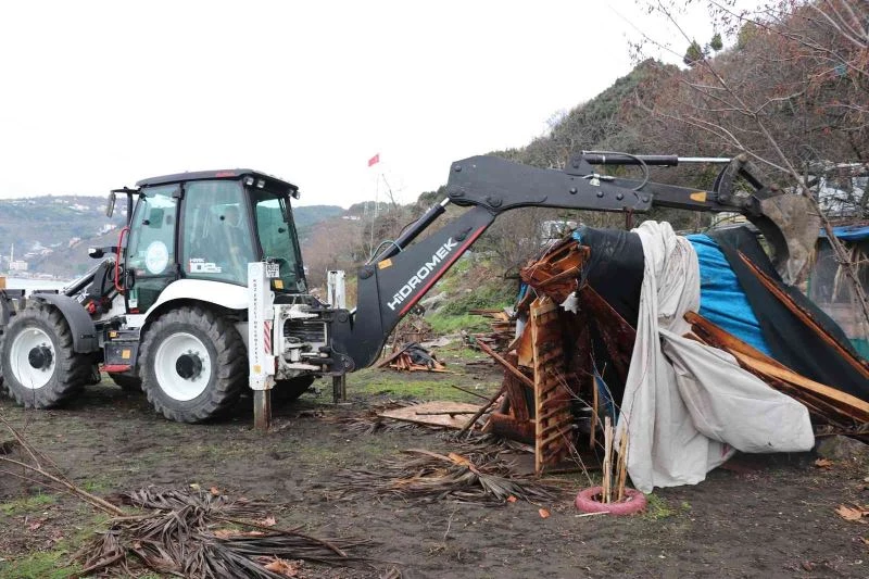 Plajlar bölgesindeki yapıları belediye ekipleri yıktı