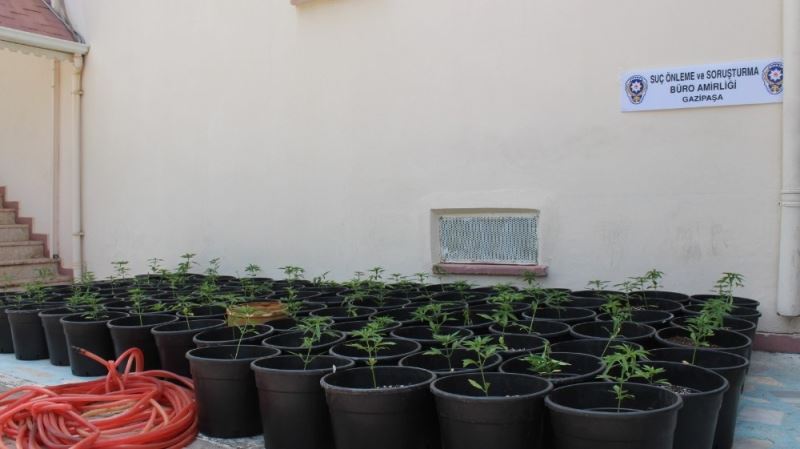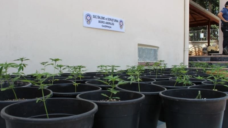 Antalya’da polisin yaptığı operasyonda 108 adet saksı içinde dikili Hint keneviri fidesi ele geçirildi.